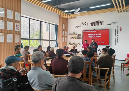 南音演奏結(jié)束, 主辦方還特別為老年人們科普肺結(jié)核的相關(guān)知識。志愿者從常見病癥引出正題,詳細講述了結(jié)核病的傳播途徑、易患人群、治療手段以及預(yù)防措施等內(nèi)容。同時,志愿者還在小區(qū)為老年人發(fā)放了防范非法集資宣傳單,內(nèi)容涵蓋反詐指南及維權(quán)渠道等。