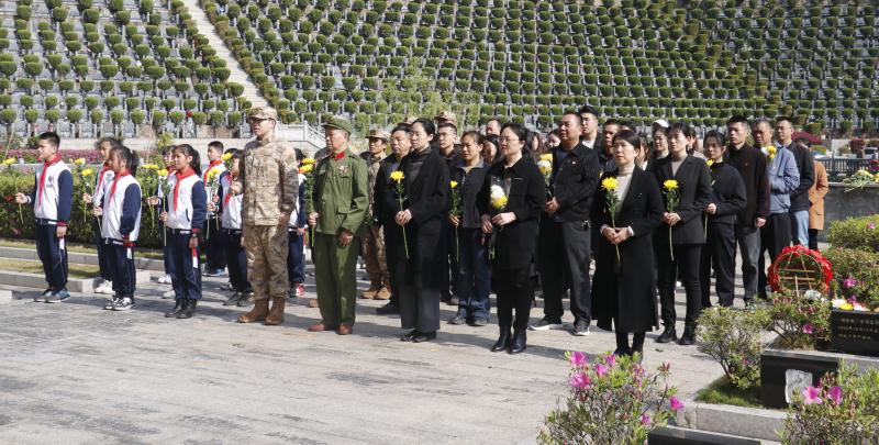 位于莆田二十四景之一“壺山致雨”山麓的烈士陵園,蒼松翠柏,青山環(huán)抱,“人民英雄永垂不朽”八個(gè)大字燙金大字格外醒目。荔城區(qū)新時(shí)代文明實(shí)踐中心、荔城區(qū)委文明辦、荔城區(qū)教育局、荔城區(qū)退役軍人事務(wù)局、共青團(tuán)荔城區(qū)委等區(qū)直機(jī)關(guān)單位、駐荔部隊(duì)代表、參戰(zhàn)老兵代表、區(qū)精神病防治院代表、新度大坂小學(xué)、新度善鄉(xiāng)中心小學(xué)師生代表等共100余人齊聚在烈士墓碑前,緬懷為民族獨(dú)立和人民解放事業(yè)英勇獻(xiàn)身的革命先烈。