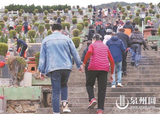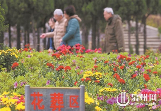 剛剛過去的這個(gè)周末,泉州市區(qū)“兩園一山”(宏福園、皇跡山陵園、清源山)陵園墓地采取預(yù)約、錯(cuò)峰、分流等方式有序開放祭掃服務(wù),迎接清明節(jié)前祭掃小高峰。市民們自覺使用鮮花、五彩紙、紅綢花球替代金紙、爆竹前往祭掃,共同營造平安、文明、和諧、有序的清明氛圍。