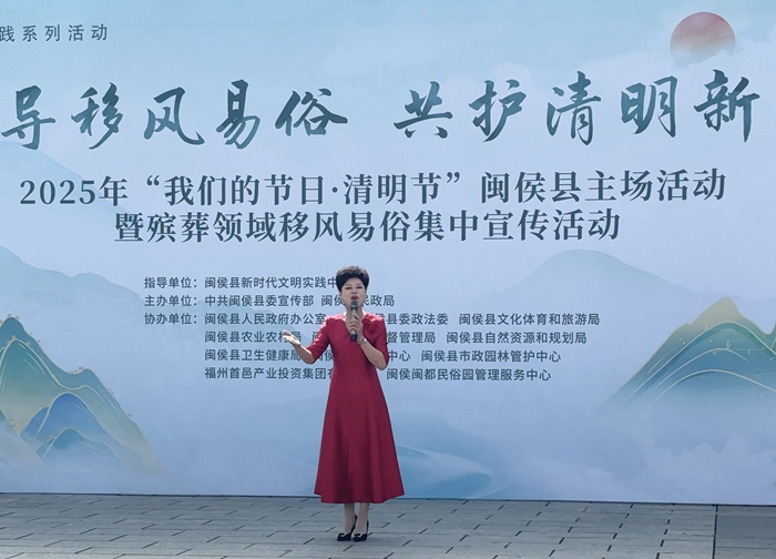 “八閩首邑好市民,男女老幼講文明;移風(fēng)易俗齊參與,改革陋習(xí)好精神……”4月2日,在閩都民俗園舉辦的2025年“我們的節(jié)日?清明”閩侯縣主場活動暨殯葬領(lǐng)域移風(fēng)易俗集中宣傳活動中,喜娘習(xí)俗文化傳承人陳秀珍用獨特的喝彩方式說“移風(fēng)易俗”,贏得現(xiàn)場眾多群眾拍手叫好?,F(xiàn)場各相關(guān)單位工作人員紛紛結(jié)合工作實際,對過往群眾開展移風(fēng)易俗宣傳和“我為群眾辦實事”文明實踐活動。