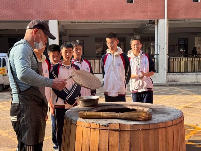 傳統(tǒng)光餅爐前,非遺傳承人展示著“缸壁貼餅”絕技,面團在爐火中幻化為金黃的文化符號。當校長王為善講述戚繼光的豐功偉績時,烘烤的不僅是傳統(tǒng)美食,更是新時代少年心中的家國火種。這種“以食載道”的教育創(chuàng)新,使鄉(xiāng)土記憶升華為精神基因,在味蕾觸動中完成文化傳承的深層敘事。