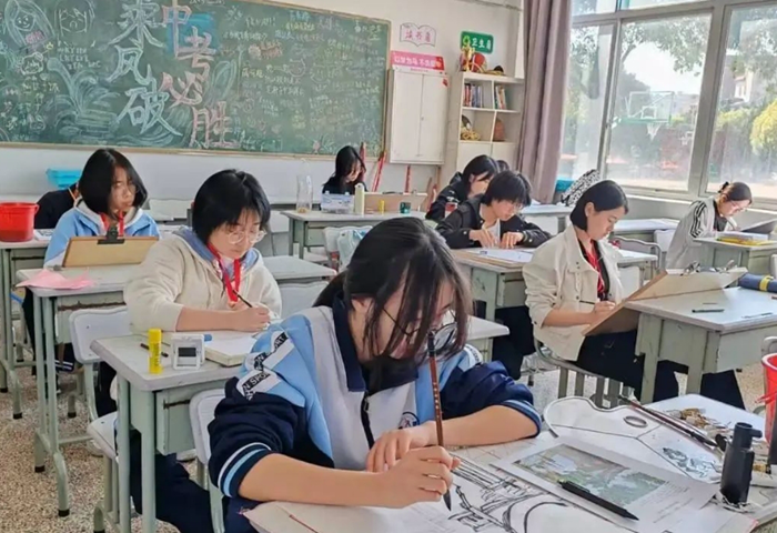 “啟瑤藝韻門心田·融繪兩岸中國夢”——2025年福清市第四屆“元洪杯”中小學(xué)生現(xiàn)場書畫大賽現(xiàn)場。 福清元洪高級中學(xué) 供圖
