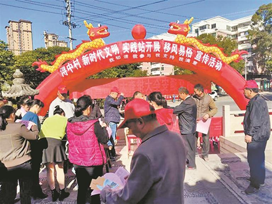 潯中村開展移風(fēng)易俗宣傳活動(dòng),發(fā)放各類宣傳材料。