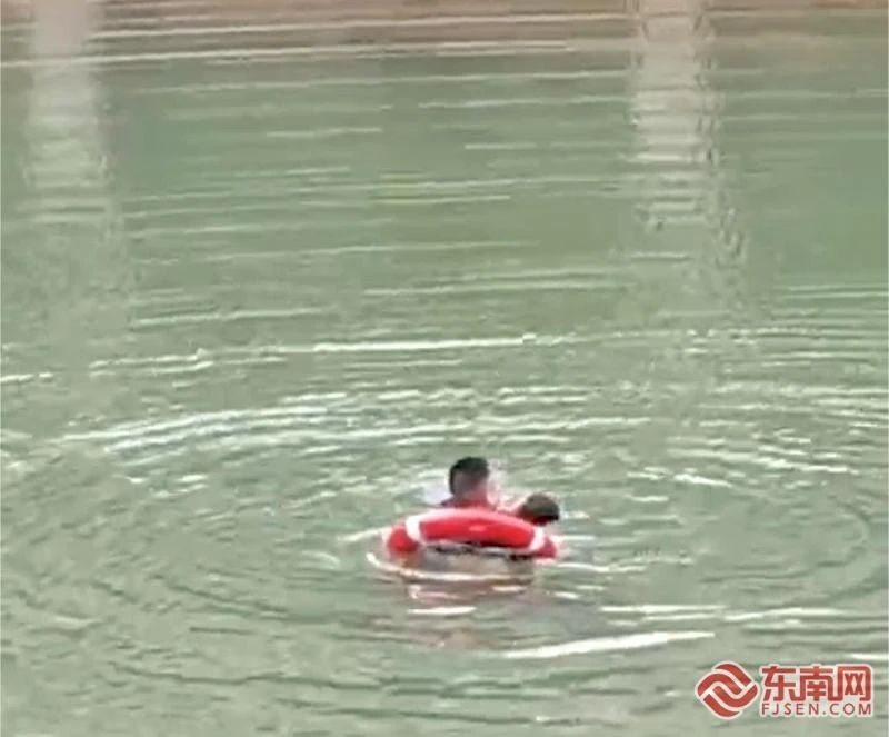 鐘煌煌套著救生圈在水中救人。寧德高速公司供圖