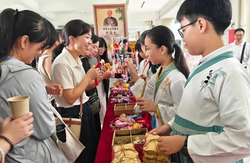 惠安螺陽中心小學(xué)鄉(xiāng)村學(xué)校少年宮參觀現(xiàn)場,學(xué)生們展示親手制作的中草藥香囊?;莅猜蓐栔行男W(xué)供圖