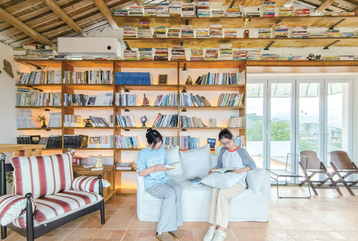 在君山片區(qū)的西西里咖啡書屋,游客沉浸在書海里。