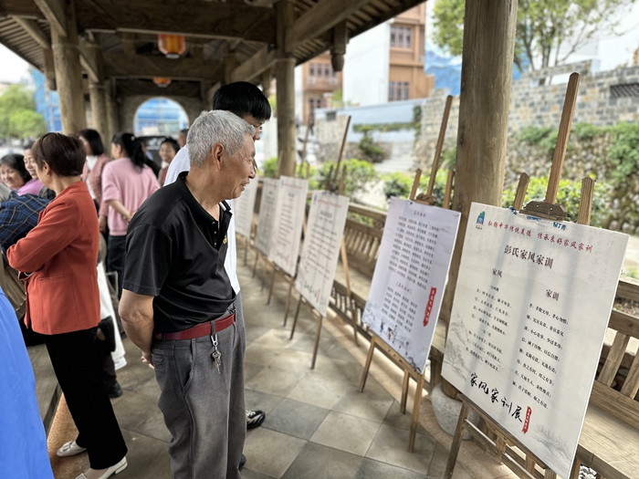 “好家風(fēng)好家訓(xùn)”活動現(xiàn)場,五夫鎮(zhèn)村民瀏覽家風(fēng)家訓(xùn)