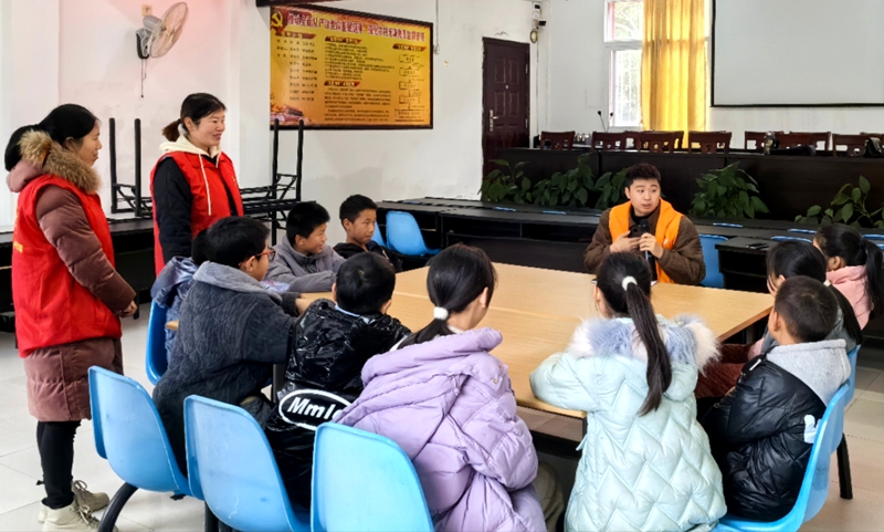 幸福學(xué)堂里孩子們?cè)诼?tīng)志愿者講解交通安全知識(shí)。李霖昊 攝
