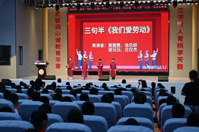 活動(dòng)由“沃土初耕、少年織夢、勞動(dòng)之光、勞動(dòng)永續(xù)”4個(gè)篇章組成。在跳蚤市場展區(qū),同學(xué)們化身“小老板”和“小顧客”,場面熱鬧非凡;在工匠精神活動(dòng)中,學(xué)生使用AI技術(shù)生成未來職業(yè)理想照,讓科技賦能生活、注入勞動(dòng)教育新的活力;展演中,開場舞《聽我說》、合唱《田埂五月風(fēng)》、朗誦《稻田里的中國夢》、三句半《我們愛勞動(dòng)》、齊唱校歌《啟航》等,學(xué)生們用藝術(shù)的形式全面展示“五育并舉”的生動(dòng)活力。