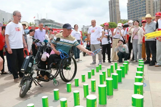 現(xiàn)場,文明交通趣味游戲區(qū)中印有“紅燈停綠燈行”“護盔保平安”“禮讓斑馬線”等標語的套圈整齊排列,參與者手持套圈,時而屏氣凝神瞄準,時而歡呼雀躍慶賀套中目標,現(xiàn)場熱鬧非凡。市民蘇靜雯在成功套中“規(guī)范佩戴安全頭盔”標語后,笑著說:“這種游戲太新穎了,玩著玩著就把交通安全要點記牢了,回家我還要和孩子再玩一次!” 一個個套圈不僅是游戲道具,更成為傳遞文明交通知識的“小使者”,讓規(guī)則在歡聲笑語中深入人心。