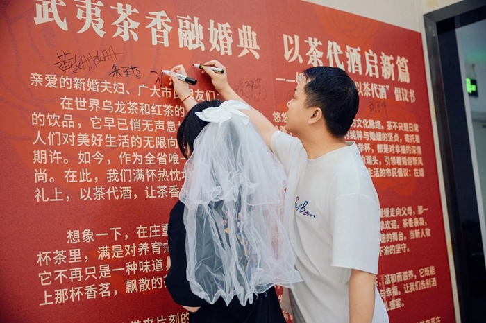 新人簽署“婚宴以茶代酒”倡議書