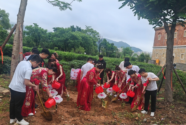 儀式過(guò)程中,新人們還共同行奉茶禮,以傳統(tǒng)禮儀表達(dá)對(duì)長(zhǎng)輩的敬重與感恩。之后,他們一同前往茶園,親手種下茶苗。這一株株茶苗,將成為他們愛(ài)情成長(zhǎng)的獨(dú)特見(jiàn)證。