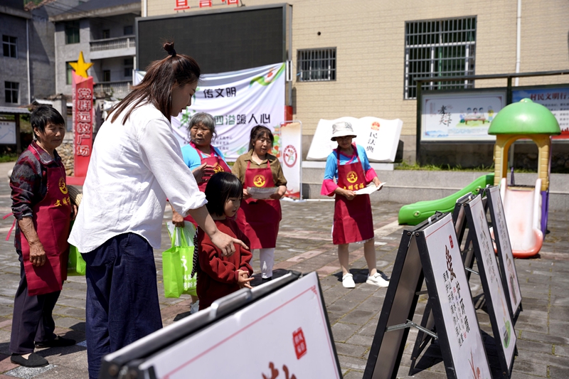 與此同時(shí),文明行為倡導(dǎo)宣傳活動(dòng)也在同步進(jìn)行。志愿者們通過宣講《廖俊波先進(jìn)事跡》,以榜樣的力量激勵(lì)村民;展示移風(fēng)易俗宣傳展板、發(fā)放宣傳單和宣傳品,向村民普及文明新風(fēng)知識(shí),倡導(dǎo)健康、文明、科學(xué)的生活方式。文明新風(fēng)小游戲區(qū)域同樣人氣爆棚,村民們踴躍參與文明行為套圈圈等趣味游戲,通關(guān)的村民喜笑顏開,收獲了印有文明標(biāo)語的購物袋、圍裙、鑰匙扣等實(shí)用小禮品。