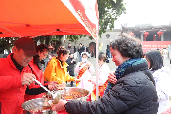 2025年“我們的節(jié)日·拗九節(jié)”主題活動(dòng)在福州各地舉辦,市民們免費(fèi)領(lǐng)取拗九粥。福州文明網(wǎng) 供圖