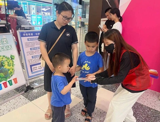 志愿者發(fā)放垃圾分類宣傳材料。鄭燕萍 供圖