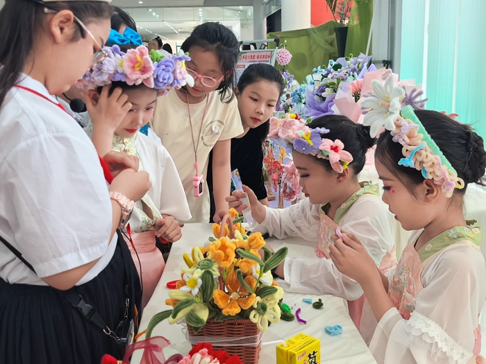 活動(dòng)現(xiàn)場,24個(gè)學(xué)校少年宮特色項(xiàng)目展位依次排開,熱鬧非凡。在手工制作類展位,洞江小學(xué)、梅花中心小學(xué)、區(qū)教師進(jìn)修學(xué)校附屬小學(xué)等學(xué)校的學(xué)生們用創(chuàng)意碰撞生活美學(xué),絨線穿梭織就錦繡,陶藝、貝藝、布藝、扭扭棒等勾勒想象,以靈巧雙手化平凡材料為藝術(shù)臻品,讓每一件作品都訴說著獨(dú)特的匠心故事;在科技創(chuàng)作類展位,長樂師范學(xué)校附屬小學(xué)、海峽路小學(xué)、鰲峰小學(xué)等學(xué)校的學(xué)生用代碼編織未來藍(lán)圖,零件搭建創(chuàng)新天地,讓智能硬件閃爍智慧光芒,同學(xué)們在數(shù)字與機(jī)械的世界中探索未知,用創(chuàng)新思維點(diǎn)亮科技夢想的火種;在非遺傳承類展區(qū),實(shí)驗(yàn)小學(xué)、吳航中心小學(xué)、金峰中心小學(xué)、泮野中心小學(xué)等學(xué)校的學(xué)生以千年文脈融入時(shí)代新聲,讓高樓米線、剪紙、掐絲琺瑯、茶藝、扎染等傳統(tǒng)技藝煥發(fā)青春活力,架起古今對話的橋梁,成為非遺的鮮活傳承者;在書畫美術(shù)類展區(qū),玉田中心小學(xué)、潭頭中心小學(xué)、湖南中心小學(xué)、羅聯(lián)學(xué)校的學(xué)生以水墨暈染山河氣象,用畫筆勾勒奇想,孩子們以色彩為語言,通過線條作旋律,在紙墨間抒發(fā)內(nèi)心情感,繪就天馬行空的藝術(shù)世界。