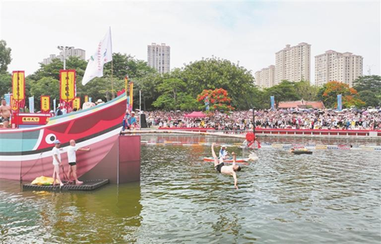 晉江安海的水上掠鴨等活動,讓游客們體驗充滿地域特色的端午民俗。張九強 攝