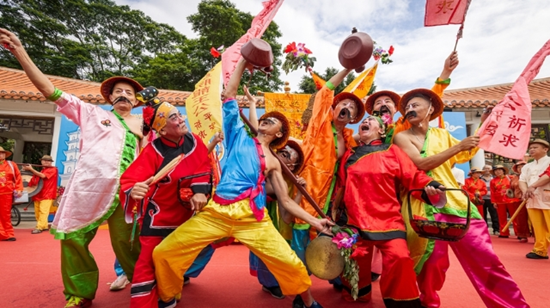在晉江安海鎮(zhèn)安平橋景區(qū)舉行的“嗦啰嗹”習(xí)俗原生態(tài)展示,讓市民游客近距離領(lǐng)略這一傳統(tǒng)民俗的獨特魅力。鯉城臨江轄區(qū)內(nèi)也舉辦“嗦啰嗹”民俗活動,巡游隊伍唱著“嗦啰嗹”歌,火鼎公婆詼諧逗趣,拍胸舞壯漢擊掌而歌,青獅隊騰挪跳躍,沿途分發(fā)艾草香囊與文明手冊,讓古老儀式兼具文化傳承與現(xiàn)代文明引導(dǎo)功能。作為第一批國家級非物質(zhì)文化遺產(chǎn)擴展項目名錄,“嗦啰嗹”又稱“采蓮”,承載著祈愿安康幸福、風(fēng)調(diào)雨順、國泰民安的美好祝福。