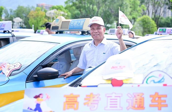 福州公交出租車公司駕駛員陳謨來多次參加“高考直通車”愛心送考活動,他作為駕駛員代表來到發(fā)車儀式現(xiàn)場?!?日晚收到考生的信息后,我第一時間跟家長聯(lián)系,確認(rèn)送考細(xì)節(jié),讓考生安心?!标愔儊肀硎荆褜④囕v擦洗干凈,送考期間每天都會準(zhǔn)備新鮮的茉莉花放在車?yán)?,為考生提供舒適的乘車環(huán)境,緩解緊張情緒。