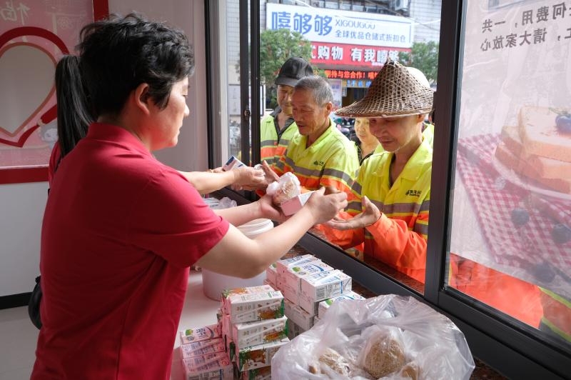 晨光初透,美好生活社工服務(wù)中心的志愿者們早早抵達(dá),準(zhǔn)備今日的早餐配送工作。隨著城市蘇醒,環(huán)衛(wèi)工人、快遞員、外賣配送員等新業(yè)態(tài)從業(yè)人員陸續(xù)來到驛站,志愿者們熱情地將早餐遞到他們手中,叮囑他們工作再忙也要照顧好自己,蒸騰的熱氣裹挾著麥餅的甜香,與歡聲笑語交織成一首暖融融的晨曲。