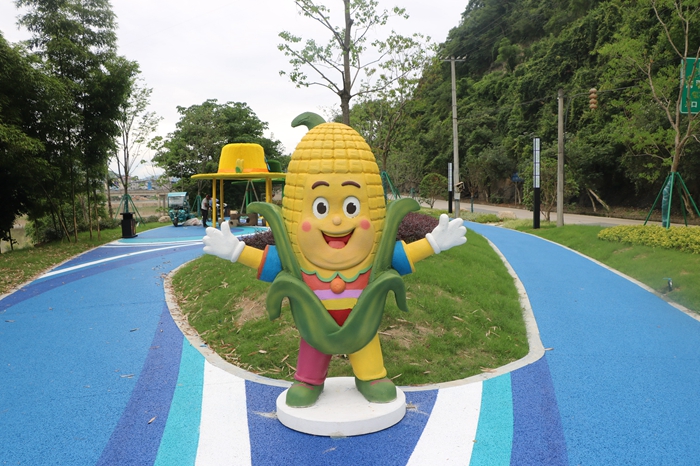 漫步口袋公園,移步易景皆見文明:“我們?nèi)绱藷釔蹡|游”藝術(shù)墻前纖塵不染,粉色長椅已成網(wǎng)紅打卡點(diǎn);步道旁“玉米人”雕塑張開雙臂,講述著“鮮食玉米之鄉(xiāng)”的產(chǎn)業(yè)故事;各色草帽亭下,村民們游玩后自覺帶走垃圾,展現(xiàn)淳樸民風(fēng)。最妙處在中央“微田園”——向日葵與竹籬相映成趣,將“兩山”生態(tài)理念化作詩意風(fēng)景。