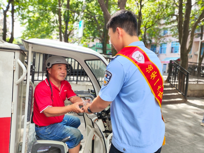 警察學(xué)院志愿者為快遞員送清涼。五鳳街道 供圖