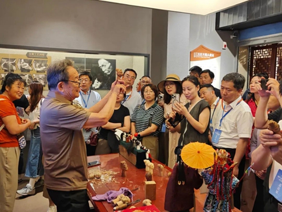 木偶頭雕刻吸引觀摩團(tuán)成員駐足拍照 林杰 攝