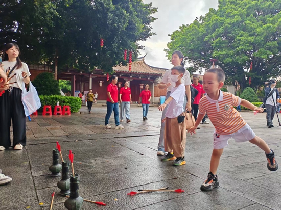 集市現(xiàn)場,孩子體驗投壺游戲。施遠圻 攝