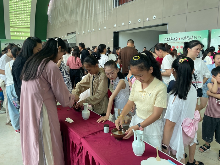 在非遺體驗(yàn)環(huán)節(jié),家長(zhǎng)與孩子們一同參與建州拓印、漆扇制作和建州宋式點(diǎn)茶活動(dòng),在動(dòng)手實(shí)踐中觸摸歷史、感受匠心?,F(xiàn)場(chǎng)還設(shè)置了文明素質(zhì)知識(shí)趣味游戲區(qū),寓教于樂(lè),引導(dǎo)孩子們從小樹(shù)立文明意識(shí)。