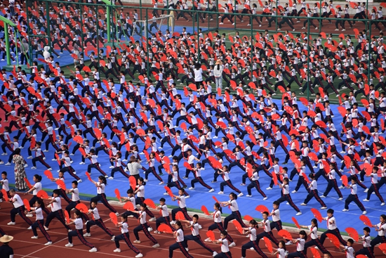 泉州市晉光小學(xué)自編自創(chuàng)學(xué)生團(tuán)體功夫扇操《精忠報(bào)國(guó)》