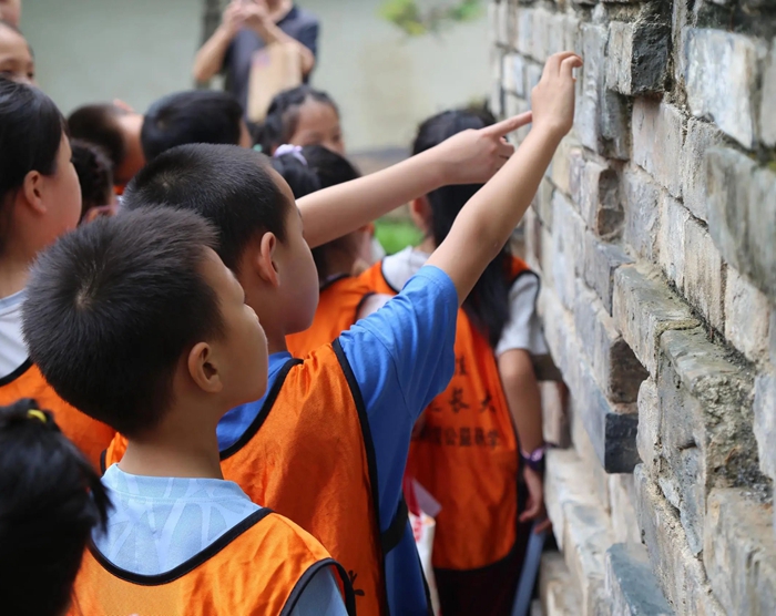 在研學(xué)導(dǎo)師和小講解員的帶領(lǐng)下,小朋友們駐足于珍貴的文物與復(fù)原模型前,認(rèn)真聆聽(tīng)、積極提問(wèn)。緊接著,在研學(xué)導(dǎo)師的指導(dǎo)下,小朋友們變身“小小考古學(xué)家”,屏息凝神尋找著城磚上鐫刻的千年“密碼”。他們認(rèn)真記錄下城磚上的銘文,熱烈討論、推測(cè)背后的故事。