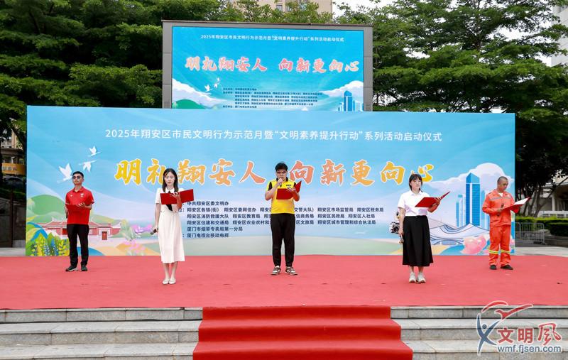 文明風(fēng)6月30日訊 為持續(xù)營造文明有禮、向上向善的良好風(fēng)尚,扎實(shí)推進(jìn)市民文明素養(yǎng)提升工程,6月28日,“明禮翔安人 向新更向心”2025年翔安區(qū)市民文明行為示范月暨“文明素養(yǎng)提升行動(dòng)”系列活動(dòng)在翔安區(qū)法治文化廣場正式啟動(dòng)。