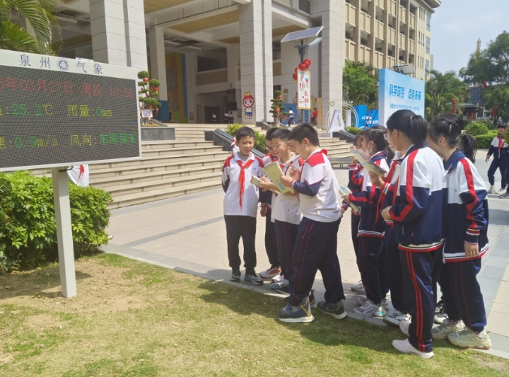 圖為泉州市晉光小學(xué)同學(xué)們在氣象觀測站前認(rèn)真記錄。