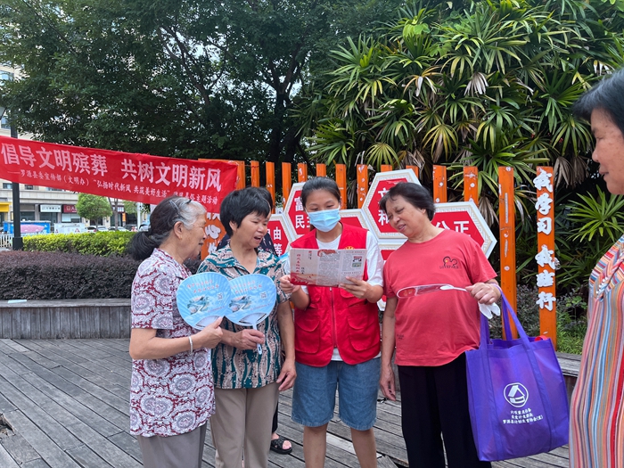6月30日,羅源縣委宣傳部(文明辦)聯(lián)合鳳美社區(qū)新時代文明實踐站,以“倡導文明殯葬 共樹文明新風”為主題在閩星廣場開展宣講活動。宣傳員手持200余份圖文并茂的宣傳單和宣傳品,向群眾詳細講解“十抵制十提倡”內(nèi)容,將綠色簡約的喪葬理念娓娓道來,讓文明殯葬知識深入人心。