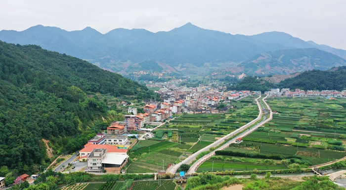 先鋒村全景,生態(tài)茶園、菜園錯(cuò)落有致