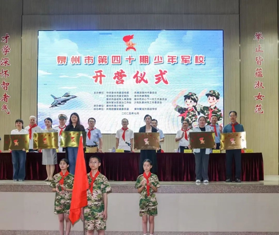 為落實團省委等七部門印發(fā)的《福建省少年軍校三年行動實施方案》,開營儀式上,主辦單位為鯉城團區(qū)委、豐澤團區(qū)委、晉江團市委、安溪團縣委、德化團縣委、泉州聚龍外國語學校授予市級少年軍校牌匾。作為全省最早開展少年軍校的地市,此次授牌進一步推動泉州市少年軍校工作向規(guī)范化、體系化邁進。
