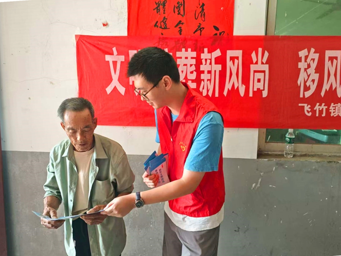 文明實(shí)踐志愿者向村民宣傳文明殯葬新風(fēng)尚。飛竹鎮(zhèn) 供圖
