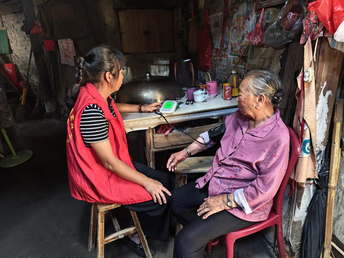 楊春英經(jīng)常入戶為村民量血壓。虞録録 攝