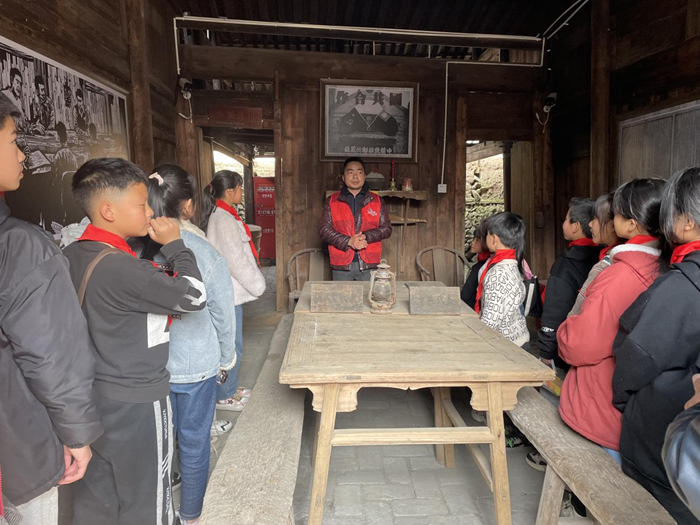 源尾村設(shè)計(jì)“紅色文明實(shí)踐線路”,組織學(xué)生參觀革命舊址。虞録録 攝