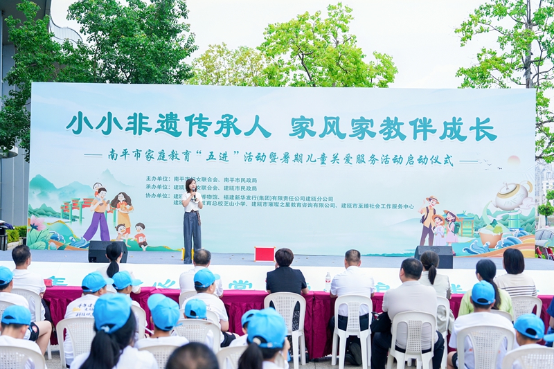 文明風7月15日訊 7月12日,“小小非遺傳承人 家風家教伴成長”南平市家庭教育“五進”活動暨2025暑期兒童關愛服務活動啟動儀式在建甌市舉辦。南平市婦聯(lián)黨組書記、主席艾琴,南平市民政局黨組書記、局長蘇建旗,建甌市委副書記林飛等出席活動?!皭坌膵寢尅贝?、留守困境兒童代表、家教特派員代表和親子家庭代表等200余人參加活動。