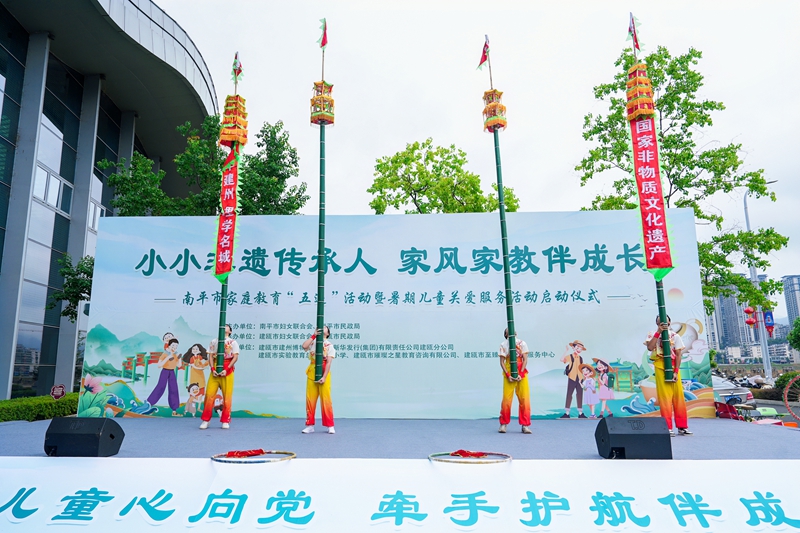 活動在精彩的非遺傘技挑幡表演《幡舞建州,傘耀芝城》中拉開帷幕,小小演員以矯健的身姿、靈動的傘技,展現(xiàn)了千年建州的文化風華,瞬間點燃現(xiàn)場氛圍。與會領導共同啟動2025暑期兒童關愛服務活動。