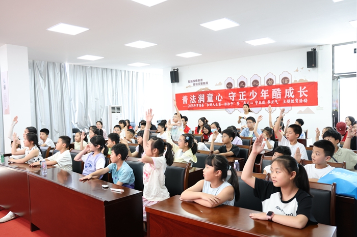 普法課堂上,孩子們認(rèn)真聽(tīng)講,踴躍互動(dòng),法治知識(shí)入心間。