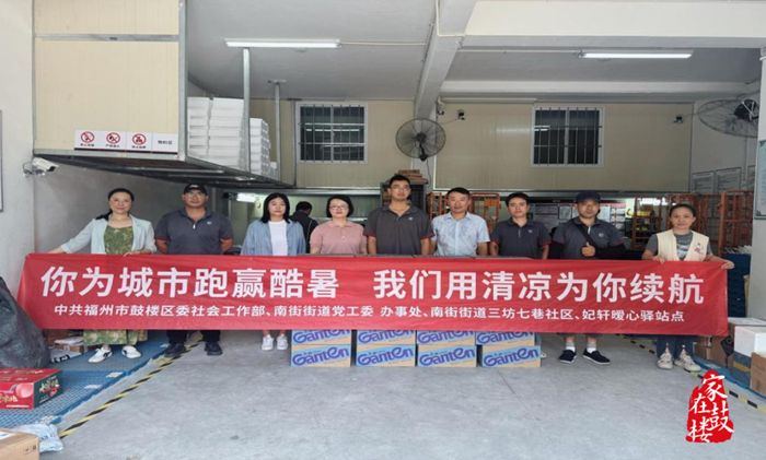 鼓樓區(qū)委社會工作部、南街街道相關(guān)負(fù)責(zé)同志共同前往文庭雅居小區(qū),為堅守崗位的快遞員們送上清涼飲用水,靠前服務(wù),生動演繹服務(wù)理念從“等上門”到“送上門”的轉(zhuǎn)變,讓新就業(yè)群體在高溫工作中直接感受到來自黨和政府的關(guān)懷,全方位傳遞社會溫情。