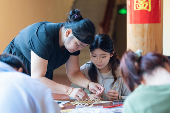 “你看,繩子要從這里穿過來,竹節(jié)人才能站起來?!贝謇锏闹窬幨炙嚾岁慃愓淠托牡叵蚯皝硌袑W(xué)的小朋友們講解著。簡(jiǎn)單的竹節(jié)通過魚線串聯(lián)成一個(gè)個(gè)構(gòu)造精巧的“竹節(jié)人”,古老的技藝在童聲中悄然延續(xù)。在這里,可以體驗(yàn)“竹節(jié)人”的精巧,可以感受“竹編風(fēng)鈴”的搖曳,孩子們專注的眼神里,是對(duì)非遺竹編文化的嘆服,更是對(duì)鄉(xiāng)土文化的一次深情觸摸。