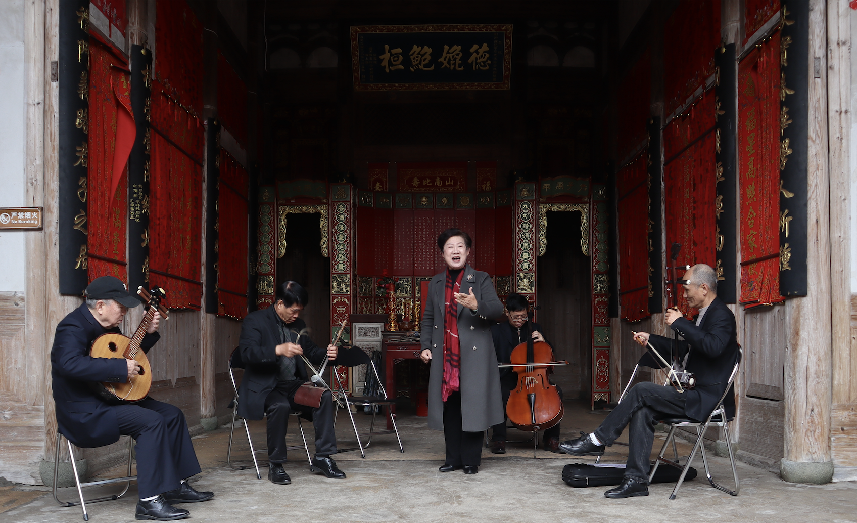 溪柄鎮(zhèn)下村新時(shí)代文明實(shí)踐站組織樂器老師在古民居開展樂器表演活動(dòng)。福安市委宣傳部(文明辦)供圖