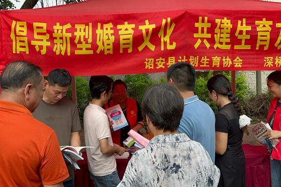 在政策宣傳區(qū),計(jì)劃生育協(xié)會工作人員對群眾講解道:“婚前檢查是免費(fèi)的,不僅能查常見遺傳病,還能了解生育風(fēng)險,對小家庭負(fù)責(zé)?!惫ぷ魅藛T還通過發(fā)放宣傳手冊、案例講解、互動問答等方式,向群眾普及新型婚育文化內(nèi)涵。重點(diǎn)宣傳了“適齡婚育、優(yōu)生優(yōu)育、性別平等、責(zé)任共擔(dān)”等理念,倡導(dǎo)破除高價彩禮、大操大辦等陳規(guī)陋習(xí),樹立“風(fēng)雨同舟、相濡以沫、責(zé)任擔(dān)當(dāng)、互敬互愛”的婚姻觀。