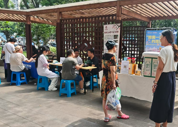 在健康義診區(qū)域,鼓西街道衛(wèi)生院、同福醫(yī)口腔、乙和堂、科爾口腔等單位的醫(yī)護(hù)人員開(kāi)展口腔檢查、血壓檢測(cè)等醫(yī)療志愿服務(wù),并詳細(xì)講解夏季防暑降溫知識(shí)?!澳獕浩撸ㄗh最近減少戶外活動(dòng)時(shí)間?!贬t(yī)護(hù)人員耐心地為老人檢查后叮囑道?,F(xiàn)場(chǎng)發(fā)放的健康宣傳手冊(cè)也受到居民們的歡迎,不少居民認(rèn)真翻閱,互相交流養(yǎng)生心得,紛紛表示這些實(shí)用的健康知識(shí)非常及時(shí)。此外,現(xiàn)場(chǎng)還布置了愛(ài)心茶攤,為過(guò)路居民提供涼茶等飲品。