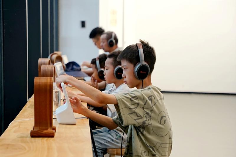 在浦城縣圖書館總館,小讀者們用耳機森林聽書。曹歆雨 攝