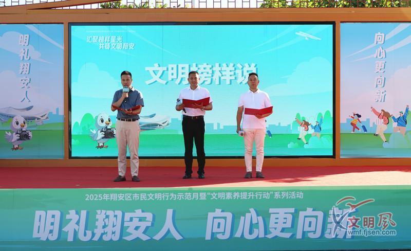 文明風(fēng)8月9日訊 8月9日,“匯聚榜樣星光 共鑄文明翔安”2025年翔安區(qū)市民文明行為示范月暨“文明素養(yǎng)提升行動(dòng)”系列活動(dòng)在廈門市翔安區(qū)閩籃新天地舉行。此次活動(dòng)由中共廈門市翔安區(qū)委文明辦、翔安區(qū)新時(shí)代文明實(shí)踐中心主辦,各鎮(zhèn)(街)新時(shí)代文明實(shí)踐所協(xié)辦,旨在持續(xù)深化文明創(chuàng)建成果,以榜樣為引領(lǐng),大力弘揚(yáng)時(shí)代新風(fēng)尚。
