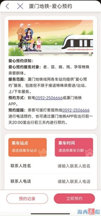 乘客可通過(guò)廈門(mén)地鐵App預(yù)約。